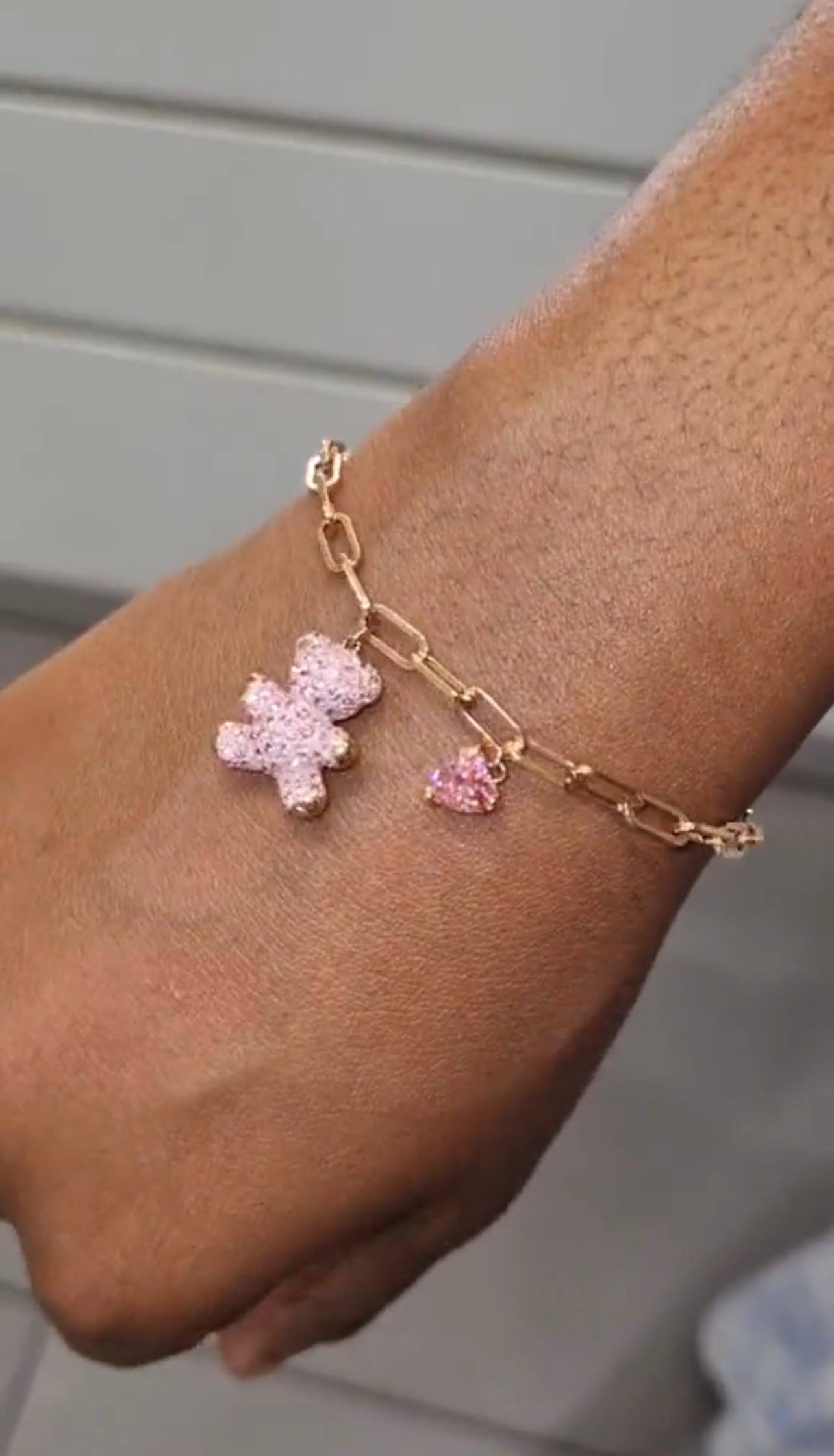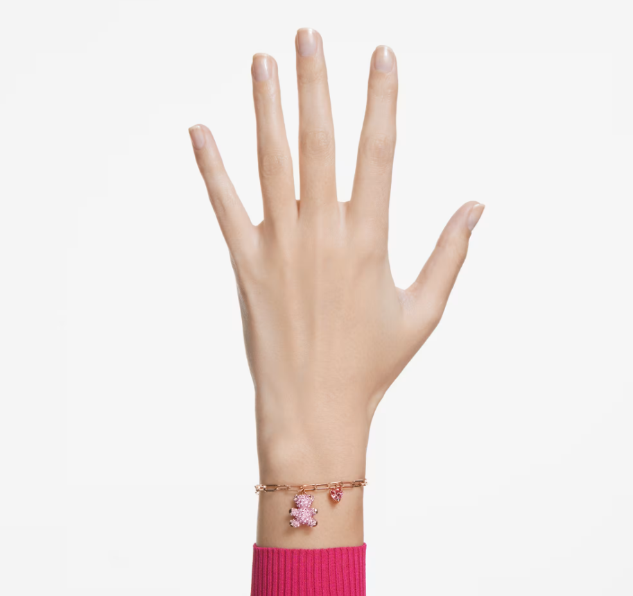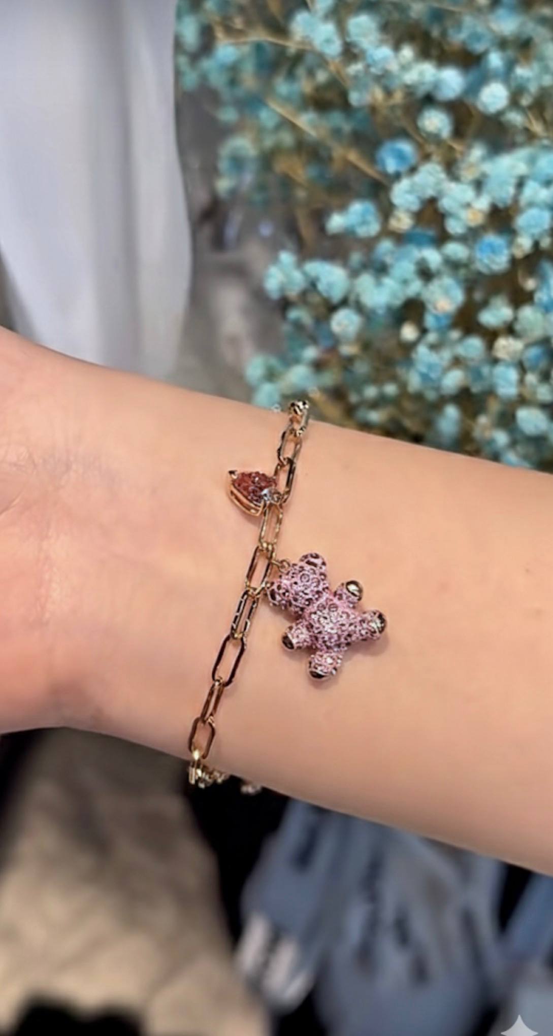 Il ciondolo teddy bear è decorato con oltre 40 micro-cristalli rosa incastonati a mano. Il charm a cuore in cristallo sfaccettato cattura la luce da ogni angolazione. Un mix perfetto tra dolcezza e raffinatezza.